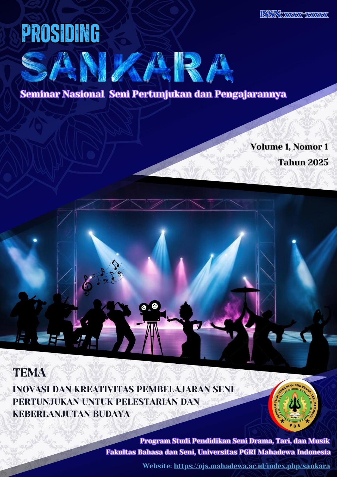 SANKARA: Prosiding Seminar Nasional Seni Pertunjukan dan Pengajarannya merupakan jurnal prosiding yang dikelola oleh Program Studi Pendidikan Seni Drama, Tari, dan Musik, Fakultas Bahasa dan Seni, Universitas PGRI Mahadewa Indonesia. Jurnal ini dipublikasikan secara konsisten dan teratur sebanyak sekali setahun pada bulan Juni. Artikel yang diterbitkan dalam prosiding ini merupakan artikel yang telah diseminarkan pada kegiatan Seminar Nasional Seni Pertunjukan dan Pengajarannya.